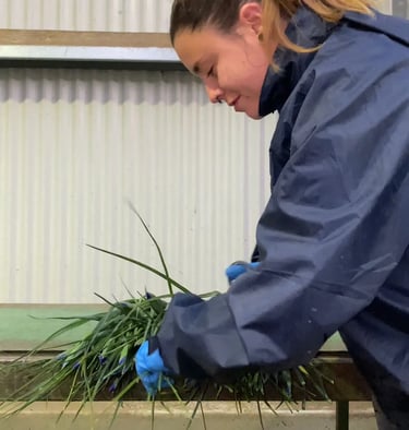 Oltre alla raccolta dei fiori, ci occupiamo dello smistamento e dell’imbustamento per la spedizione. Raccogliamo, puliamo e ripiantiamo i bulbi dei fiori.