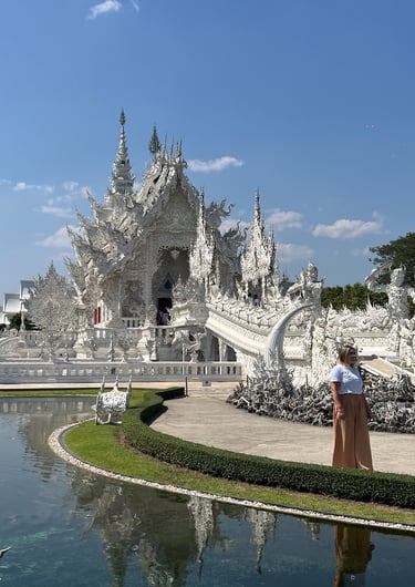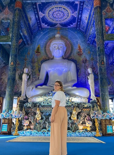 Qui a Chiang Rai abbiamo visitato i templi più belli, secondo la nostra esperienza, della Thailandia e di tutti i nostri viaggi passati. Stiamo parlando del Tempio Bianco, del Tempio Blu, il Museo Banduum (conosciuto anche come Tempio Nero) e della maestosa statua di Lady Buddha, a 15 minuti dal centro città.